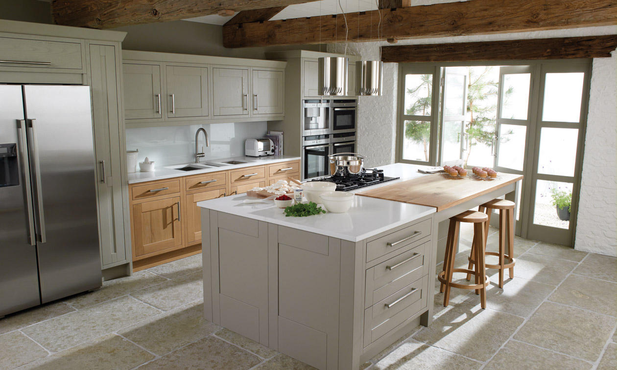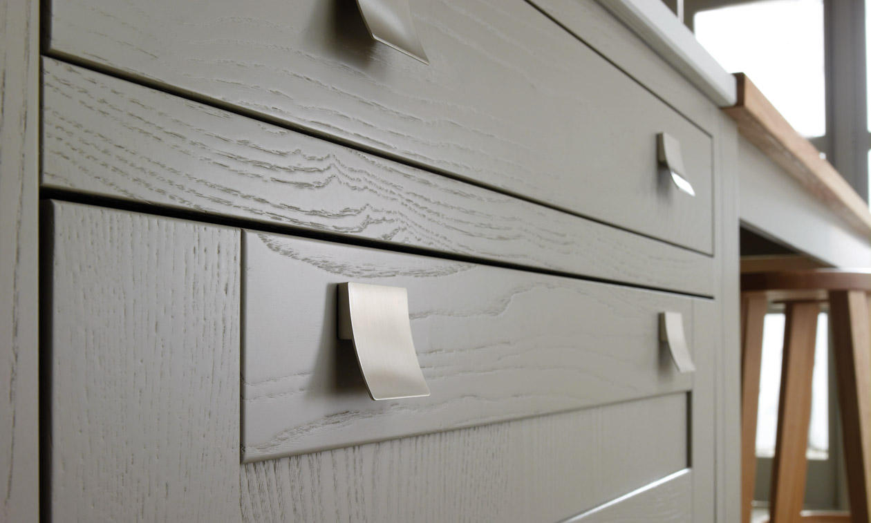 Traditional kitchens are elegant and classy and have truly stood the test of time. They are about small details and elegant charm. Typically more ornate than a contemporary kitchen, traditional kitchens sit within the frame of the cabinet and are typically painted in muted and more natural colours to emanate warmth and a homely feel. Commonly traditional kitchens have raised panels on the cabinets allowing for a variety of edging or “beading” around the panels giving them a classy and elegant charm. These are then affixed with bar, knob or cup handles which are available in a variety of colours and styles to really set off your chosen colours and door styles. Traditional kitchens are most at home in earlier properties or those located in villages or set away from centralised areas, although a traditional design will give class and sophistication to any home.